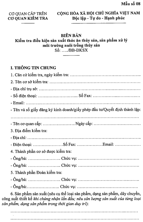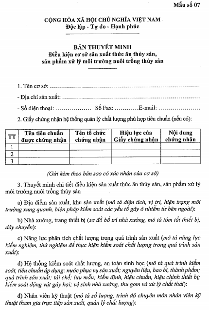 - Kiểm tra thực tế về điều kiện cơ sở tại địa điểm sản xuất thức ăn thủy sản, sản phẩm xử lý môi trường nuôi trồng thủy sản;