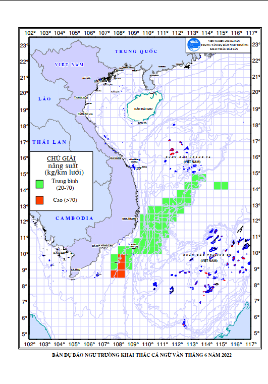 - Khu vực có khả năng khai thác ước đạt trung bình (20 - 70kg/lưới)