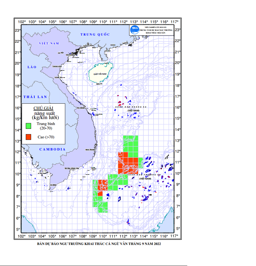 - Khu vực có khả năng khai thác cao (>70kg/km lưới)