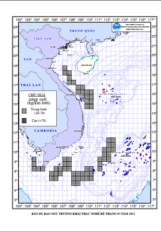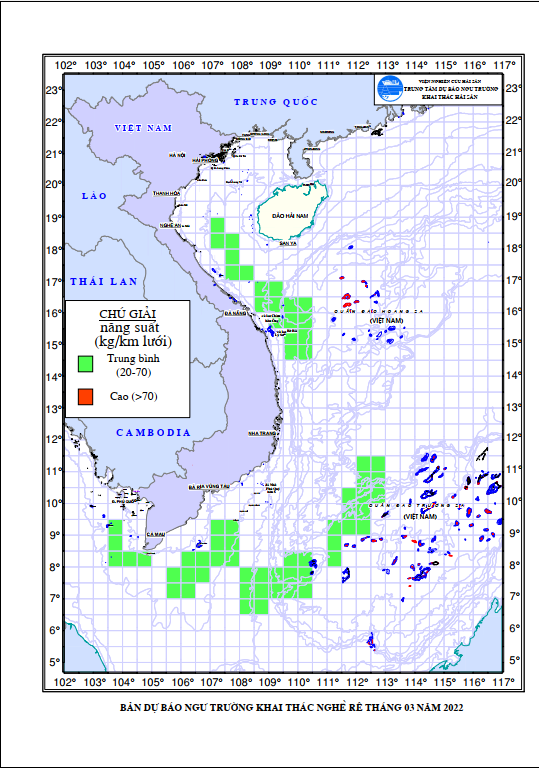 - Khu vực có khả năng khai thác cao (>70kg/km lưới): Không xuất hiện