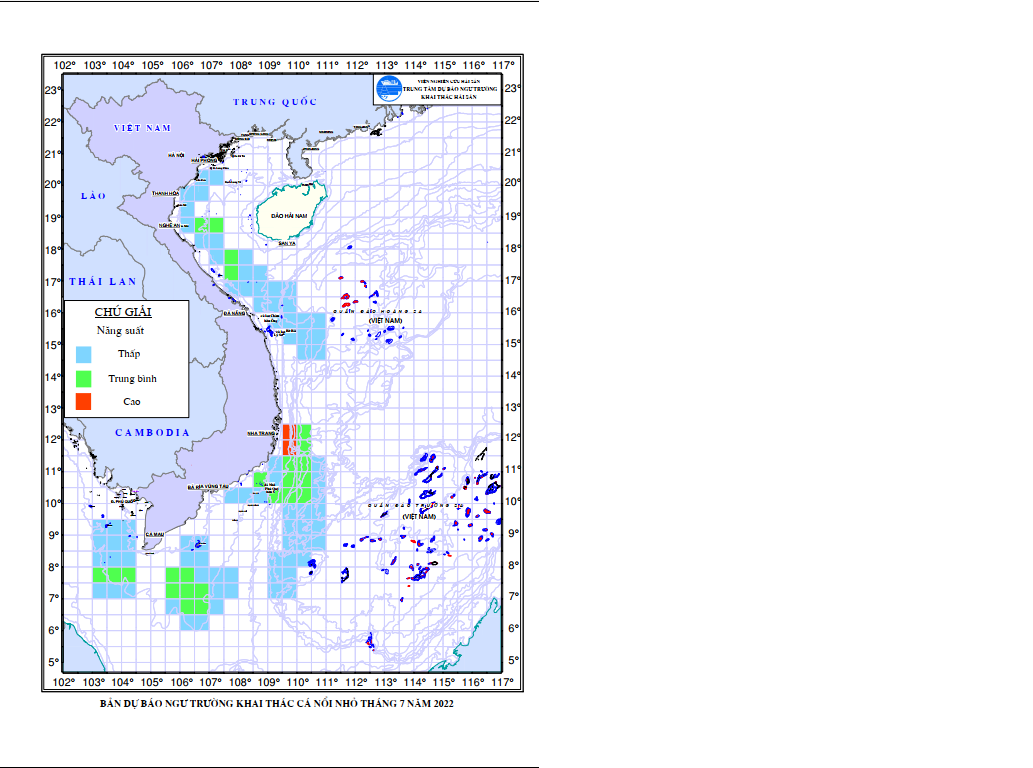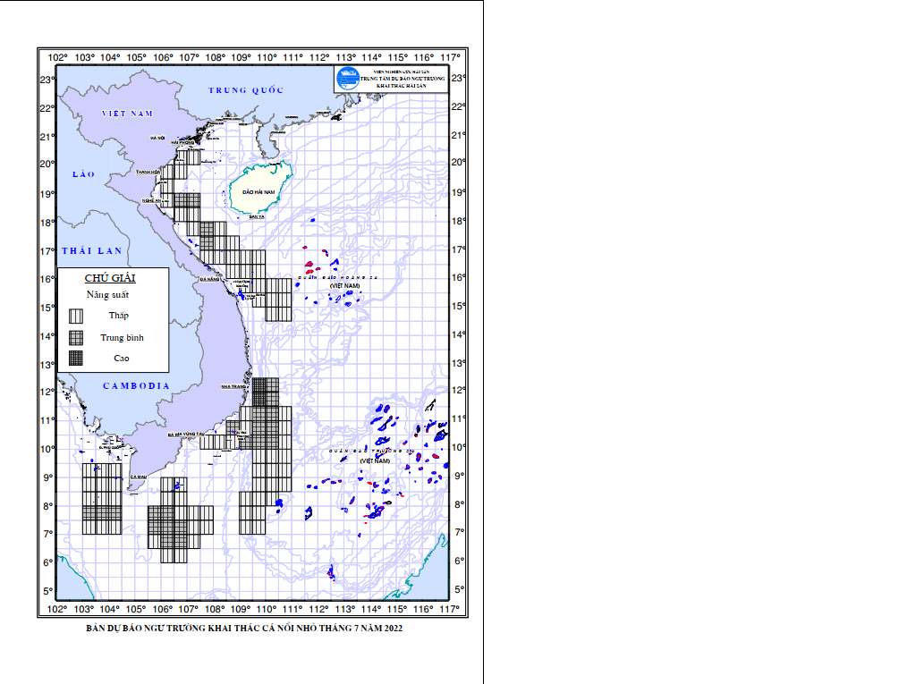 Dự báo ngư trường khai thác cá nổi nhỏ (Hạn tháng, tháng 7/2022) (01-07-2022)