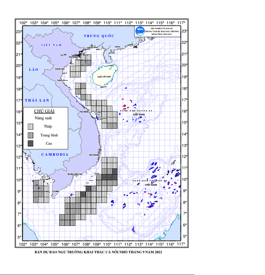 Dự báo ngư trường khai thác cá nổi nhỏ (Hạn tháng, tháng 9/2022) (01-09-2022)