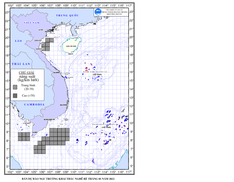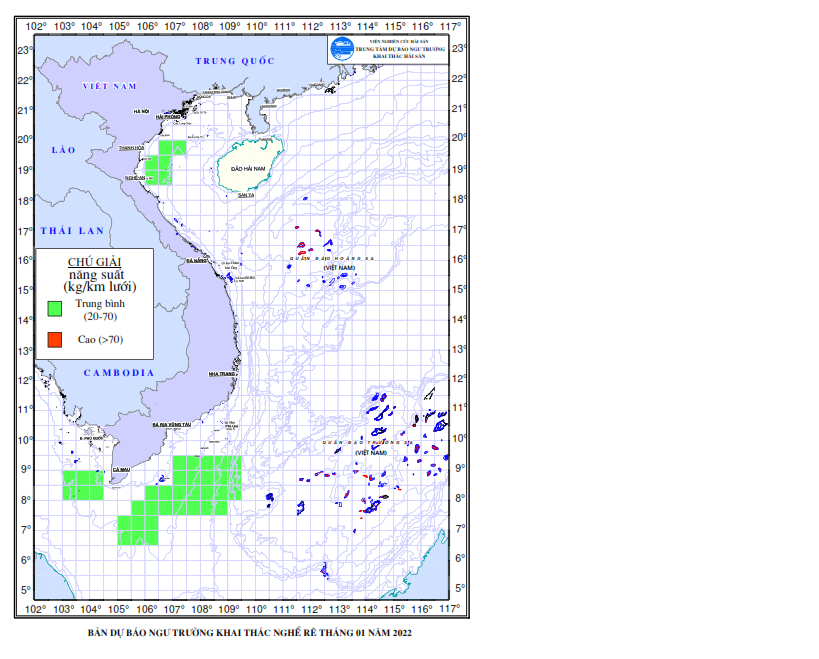 - Khu vực có khả năng khai thác ước đạt trung bình (20 – 70kg/lưới) Không xuất hiện