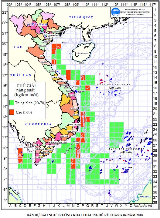 - Khu vực có khả năng khai thác ước đạt trung bình (20-70kg/lưới)