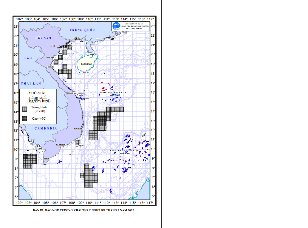 Dự báo ngư trường khai thác nghề rê (Hạn tháng, tháng 07/2022) (01-07-2022)