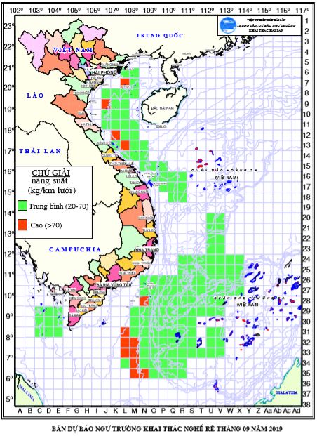 - Khu vực có khả năng khai thác ước đạt trung bình (20 – 70kg/lưới)