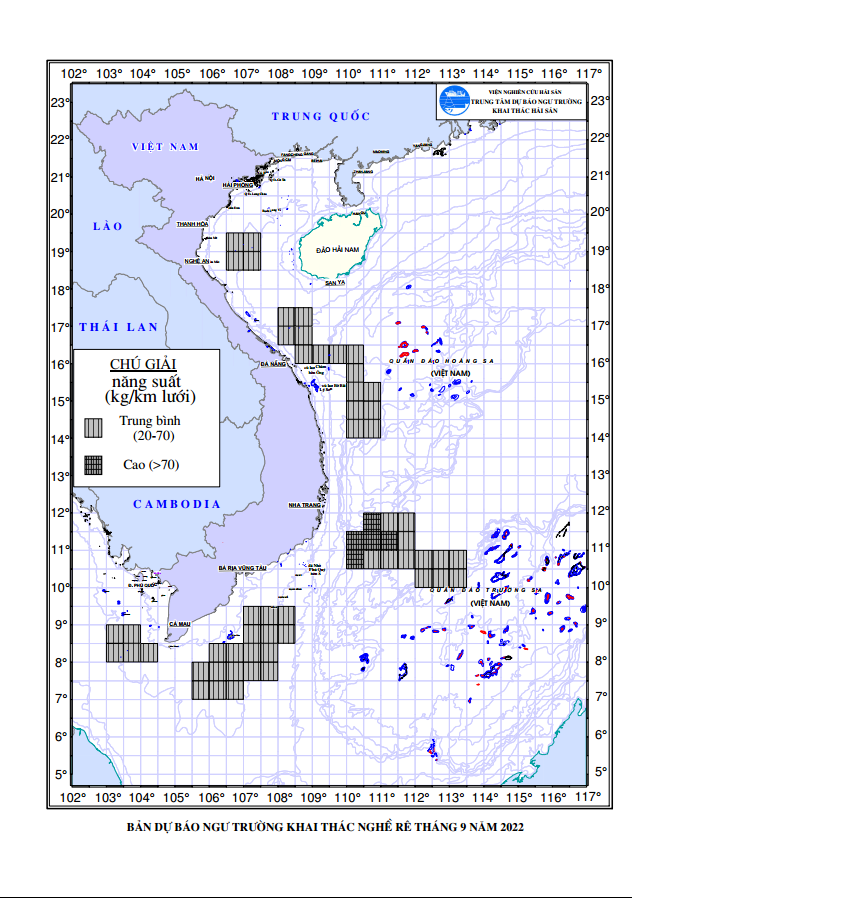 Dự báo ngư trường khai thác nghề rê (Hạn tháng, tháng 09/2022) (01-09-2022)