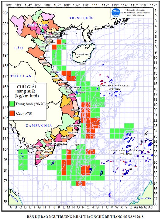 - Khu vực có khả năng khai thác ước đạt trung bình (20-70kg/lưới)
