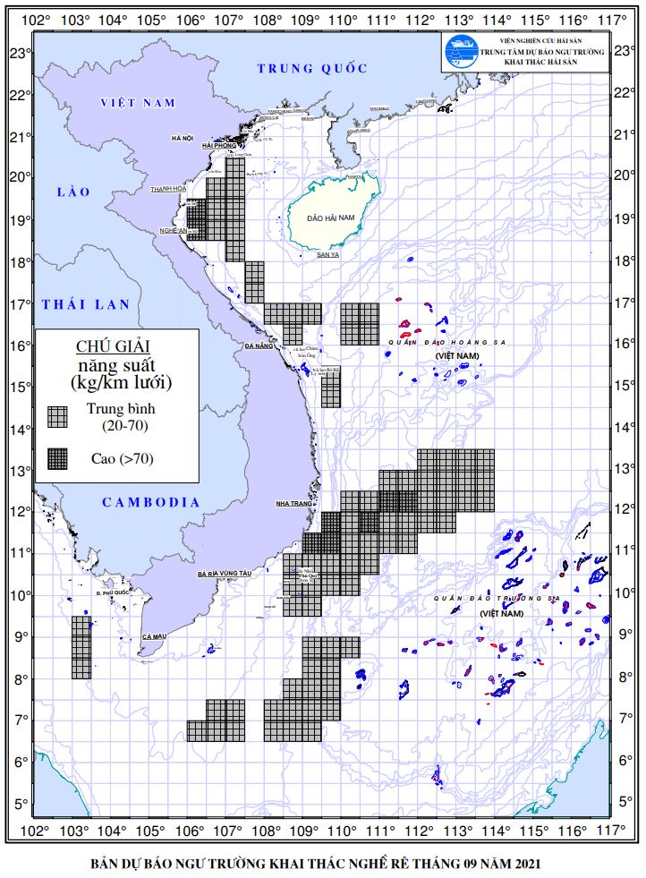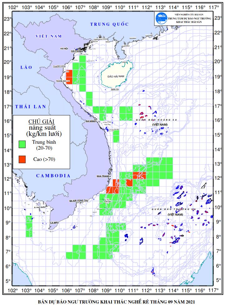 - Khu vực có khả năng khai thác cao (>70kg/km lưới): Không xuất hiện