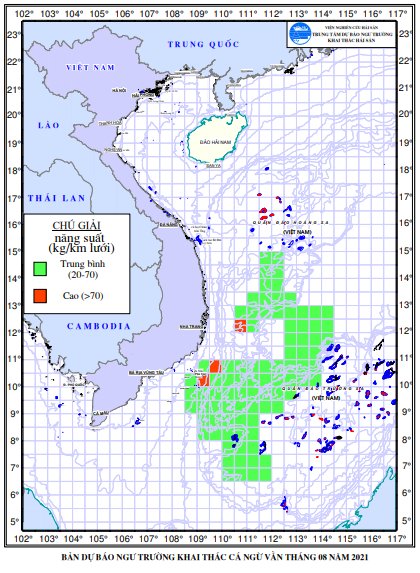 - Khu vực có khả năng khai thác ước đạt trung bình (20 - 70kg/lưới)