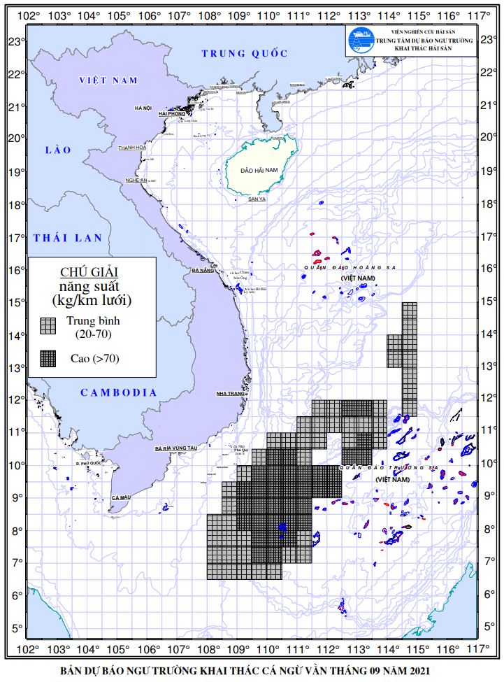 - Khu vực có khả năng khai thác cao (>70kg/km lưới)