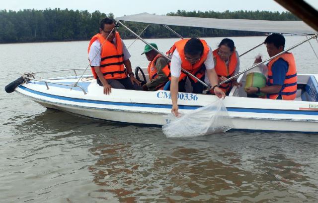 Sáng nay ngày 13/6/2018 với sự tham gia của đồng chí Nguyễn Văn Trực – Phó giám đốc Sở Nông nghiệp và Phát triển nông thôn thành phố Hồ Chí Minh, Chi cục Thủy sản có tổ chức tiến hành thả về môi trường tự nhiên 200.000 con tôm càng giống (P45) tại khu vực xã Tam Thôn Hiệp huyện Cần Giờ nhằm tái tạo nguồn lợi thủy sản tại lưu vực.