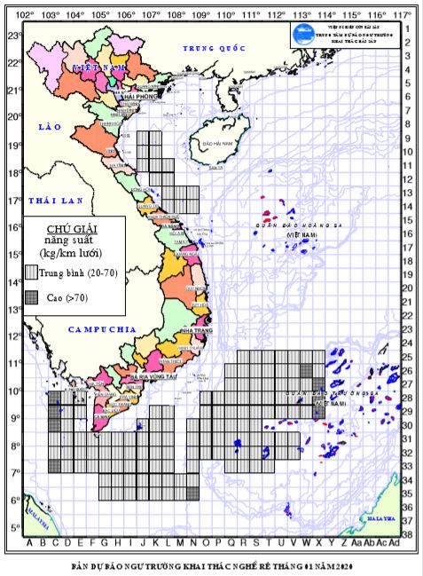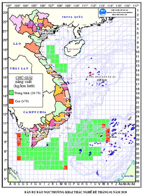 - Khu vực có khả năng khai thác ước đạt trung bình (20 – 70kg/lưới)