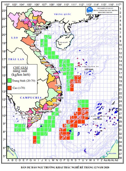 - Khu vực có khả năng khai thác trung bình (20 - 70kg/lưới)