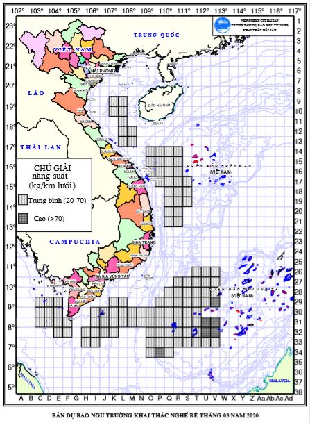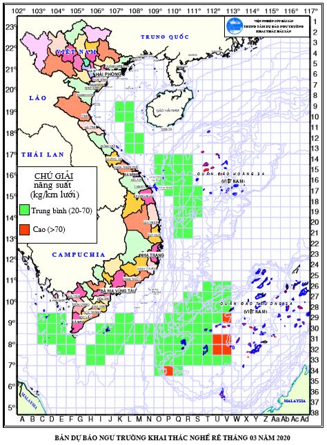 - Khu vực có khả năng khai thác trung bình (20 - 70kg/lưới)