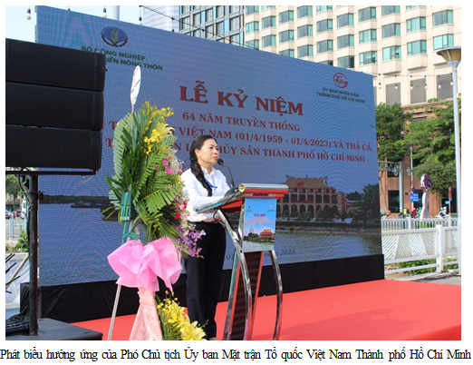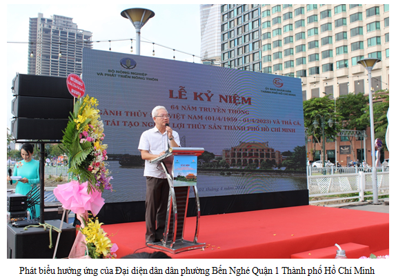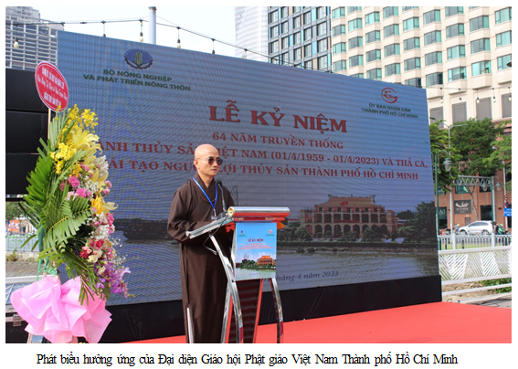 Trong buỗi Lễ Kỷ niệm 64 năm Ngày truyền thống ngành Thủy sản Việt Nam (01/4/1959 - 01/4/2023) và thả cá, tái tạo nguồn lợi thủy sản Thành phố Hồ Chí Minh, có phát biểu hưởng ứng của Lãnh đạo Ủy ban Mặt trận Tổ quốc Việt Nam Thành phố Hồ Chí Minh, Đại diện Ban trị sự Giáo hội Phật giáo Việt Nam Thành phố HCM, đại diện nhân dân phường Bến Nghé Quận 1 phát biểu hưỏng ứng để việc thả cá tái tạo nguồn lợi thủy sản, phóng sinh của các Tăng ni, phật tử ngày càng hiệu quả và đúng quy định và Chương trình tái tạo nguồn lợi thủy sản ngày càng lớn mạnh, trở thành chương trình được xã hội hóa của Thành phố.