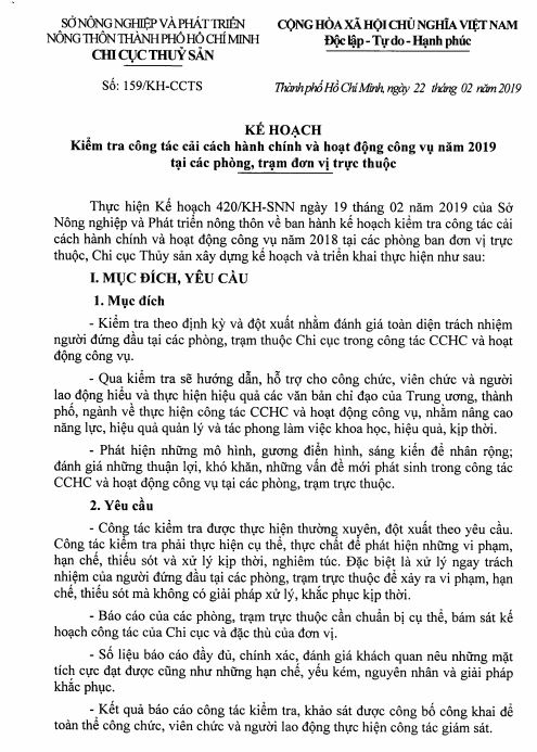 Kế hoạch Kiểm tra công tác hành chính và hoạt động công vụ năm 2019