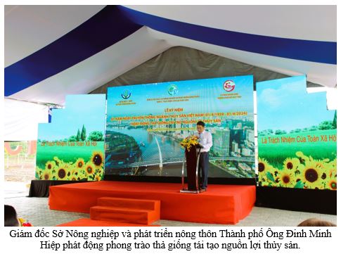 Ông Đinh Minh Hiệp – Giám đốc Sở Nông nghiệp và Phát triển nông thôn phát động phong trào thả giống tái tạo và phát triển nguồn lợi thủy sản trên địa bàn Thành phố. Ông cho rằng đây là hoạt động có ý nghĩa chính trị - xã hội sâu sắc góp phần tuyên truyền, giáo dục nâng cao nhận thức, trách nhiệm của các tổ chức, cá nhân nhất là cộng đồng ngư dân trong công tác bảo vệ, tái tạo và phát triển nguồn lợi thủy sản, tạo hiệu ứng lan tỏa trong toàn xã hội.