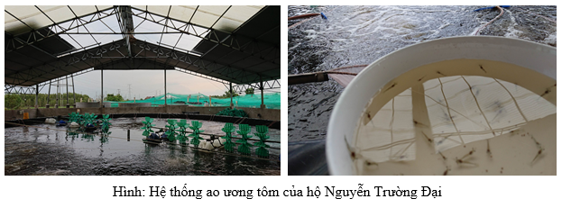 Tổng quan về cơ sở: tổng diện tích 38.000 m2, gồm 04 ao nuôi. Trong đó 65% là ao lắng, ao xử lý nước; 10% ao chứa – xử lý bùn thải; 25% ao nuôi. Ao nuôi được thiết kế theo hình tròn để tăng cường khả năng đảo nước, diện tích ao nuôi từ 1.200 – 1.400m2, sử dụng quạt nước và dàn oxy đáy, xiphong hằng ngày sau khi cho ăn, sau đó cấp nước lại theo tỷ lệ hao hụt. Cơ sở nuôi cho ăn hoàn toàn bằng máy, mỗi ao đặc 1 máy cho ăn cố định, được định lượng và thời gian, sản lượng trung bình 7 tấn/ao/vụ, 2 vụ/năm. Doanh thu mỗi năm đạt từ 1-1,2 tỷ.