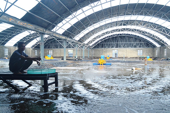 Mới đây, ông Trần Công Thành đưa vào sử dụng khu nuôi tôm trong nhà kính có tổng diện tích 1.000m2 với 4 ao nuôi ở thôn Hòa An (xã Tam Hòa, Núi Thành). Đây là mô hình đầu tiên và duy nhất đến thời điểm này ở Quảng Nam. Ông Thành cho biết, phương châm là chậm mà chắc nên ban đầu thử nghiệm ương nuôi tôm giống trong nhà kính trước rồi mới bố trí thâm canh nuôi tôm thương phẩm khi đến thời điểm thích hợp. Ông Thành bố trí ương tôm giống trong nhà kính, từ post 10 (1.500 con thì được 1kg tôm giống) cho đến khi tôm lớn bằng chiếc đũa thì bố trí nuôi tôm thương phẩm ở 3 khu vực. Thời gian cho công đoạn này tốn khoảng 20 ngày. “Tôm nuôi, đặc biệt là tôm giống rất nhạy cảm với mọi biến đổi, biến động của môi trường sống. Để tạo điều kiện tốt nhất cho tôm giống phát triển, tôi đầu tư 1 tỷ đồng để xây hẳn khu nuôi tôm trong nhà kính, tách biệt hoàn toàn với bên ngoài. Ở khu nuôi tôm trong nhà kính, chỉ có tôi và đội ngũ kỹ thuật nuôi tôm mới được vào. Vì cô lập với không gian bên ngoài nên tránh được mầm bệnh” - ông Thành mô tả về khu nuôi tôm của mình.