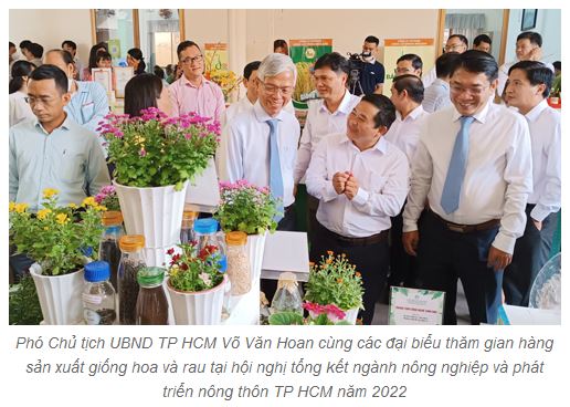 Theo Sở NN-PTNT TP HCM, năm 2022, giá trị sản xuất ngành nông nghiệp TP HCM đạt 19.035,6 tỉ đồng, tăng 3,78% so với năm trước; giá trị sản xuất bình quân ước đạt 570 triệu đồng/ha, tăng 14,5%. Năm 2023, TP HCM phấn đấu giá trị sản xuất nông nghiệp sẽ tăng lên 620-640 triệu đồng/ha với nhóm các sản phẩm chủ lực như: rau, hoa - cây kiểng, cá cảnh...